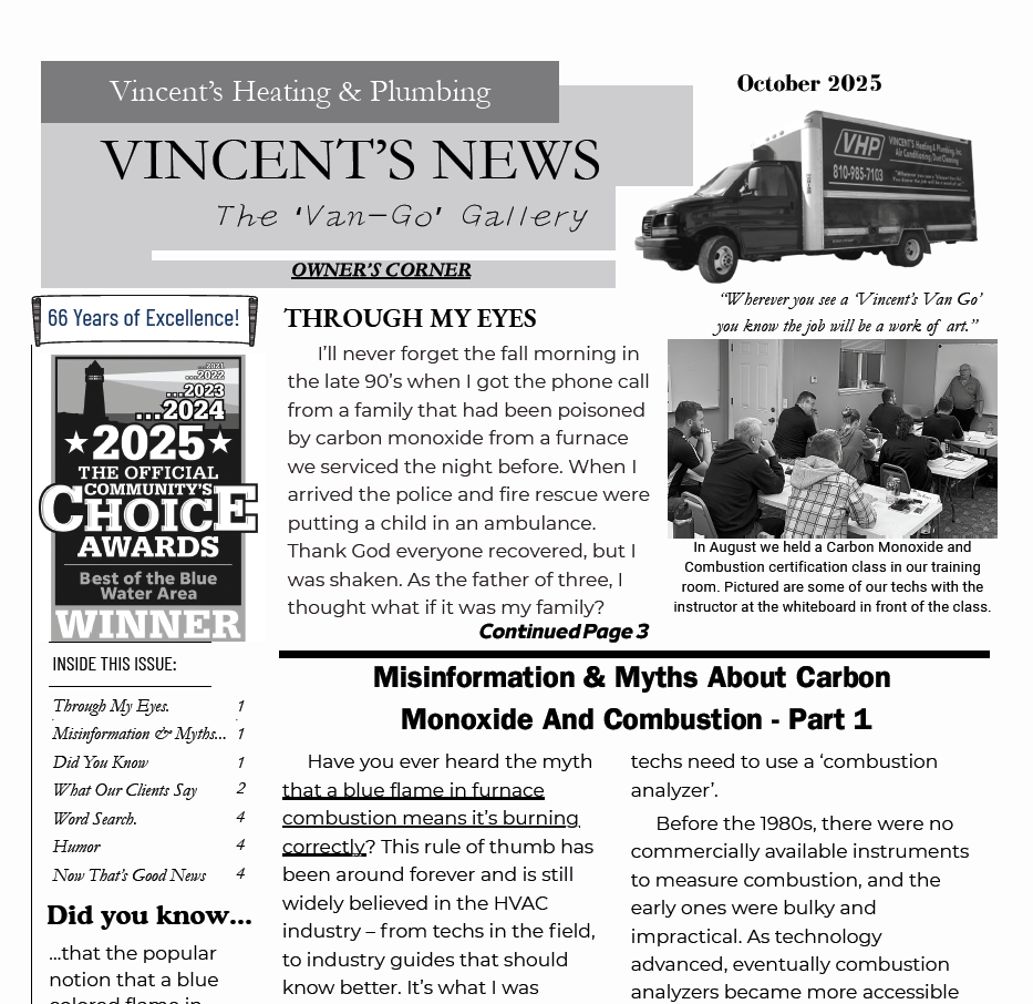 The 'Van Go' Gallery is Vincent Heating & Plumbing's monthly newsletter. Our newsletter highlights what is currently happening at VHP and with our customers as well as giving tips for your furnace and air conditioner to help save on your bills and other useful information. Feel free to download any of the issues here or take a look at some of the related links below.