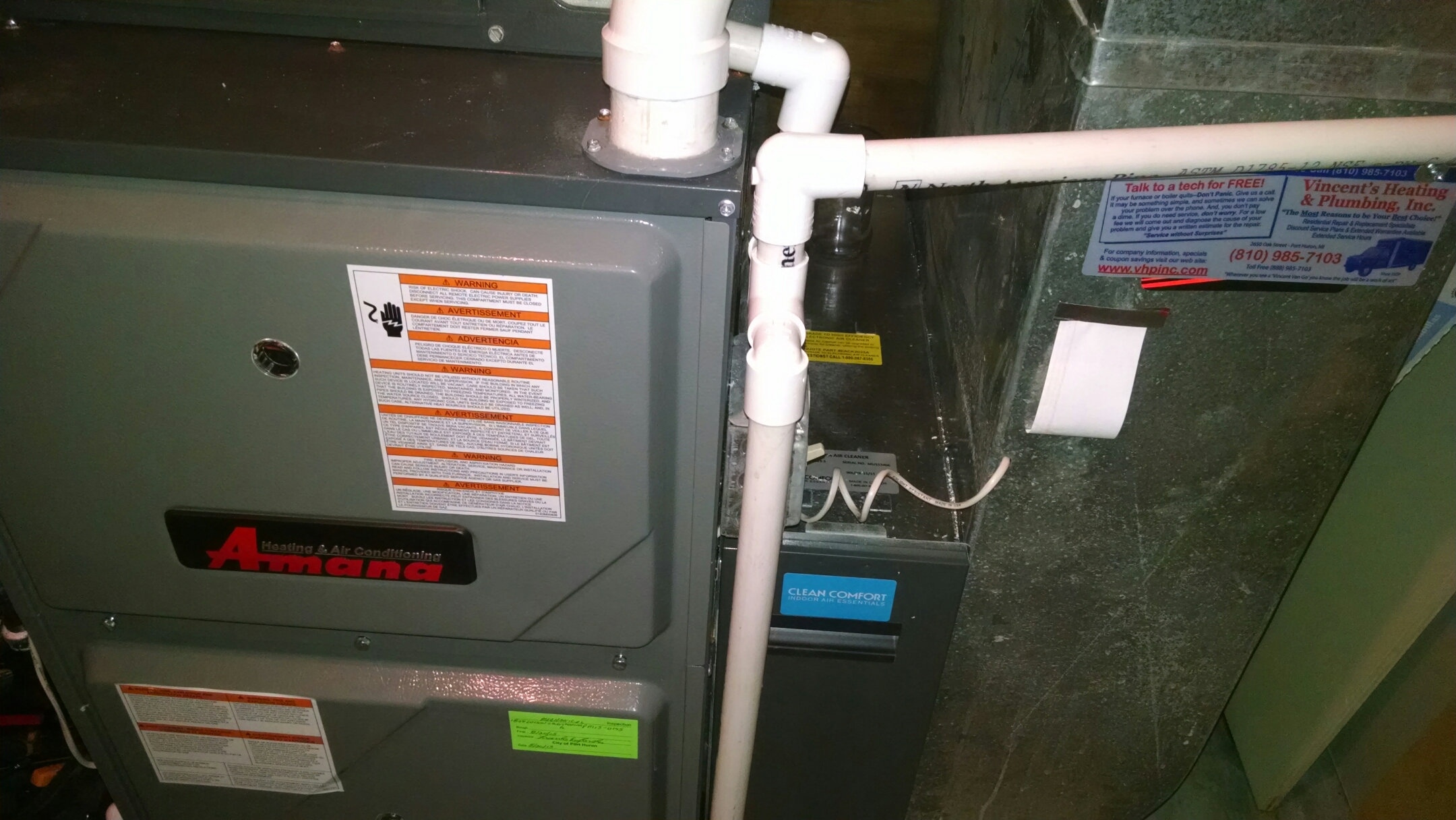 Marvin and Brianna (I think) arrived when they were scheduled (no "they'll be there between 8 and 1" (Comcast I'm talking to you)). The problem was identified quickly and we were provided three options with three price points. We picked the middle choice and the repairs were made. Thank you Vincent H&P and Marvin & Brianna!